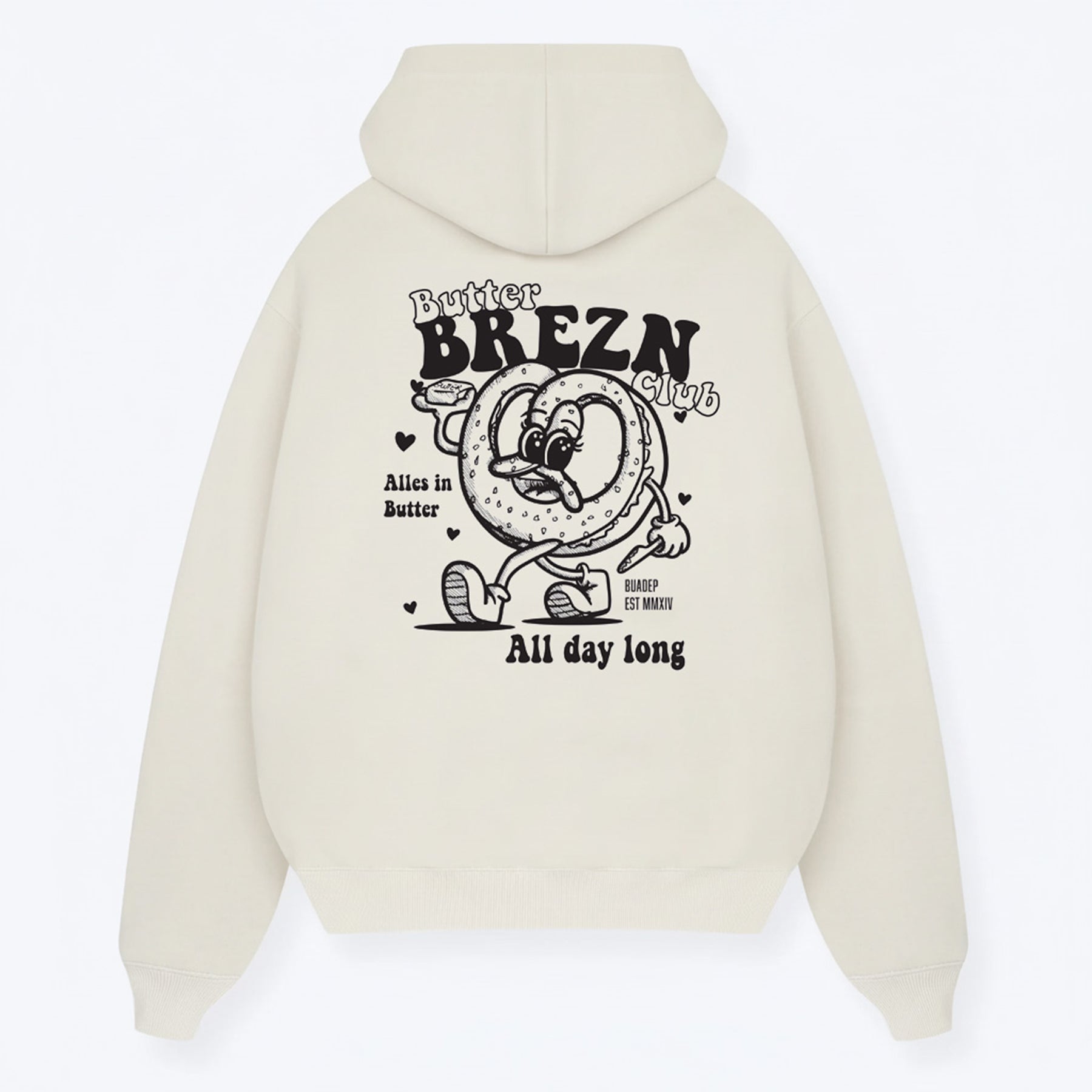 Der Hoodie kommt in einem cremigen Farbton, der so smooth wirkt wie frische Butter auf der Breze. Weicher Stoff, lässiger Fit, ikonischer Backprint – ein Must-Have für alle, die’s gern haben.