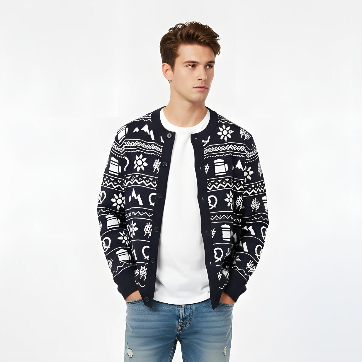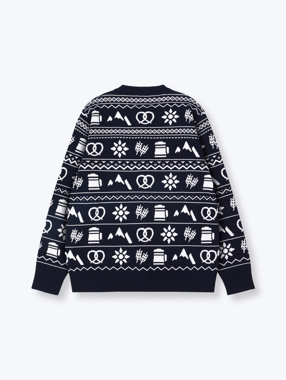 Der hochwertige Feinstrick sorgt für angenehmen Tragekomfort, das dezente Muster mit Brezn, Maßkrug und Edelweiß verbindet bayerische Tradition mit einem modernen Look.